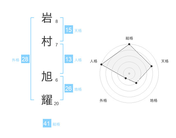 岩村 旭耀さんを姓名の画数から五運を鑑定