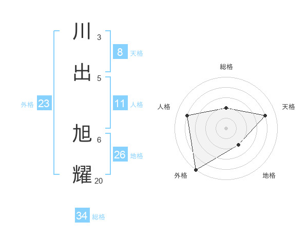 川出 旭耀さんを姓名の画数から五運を鑑定