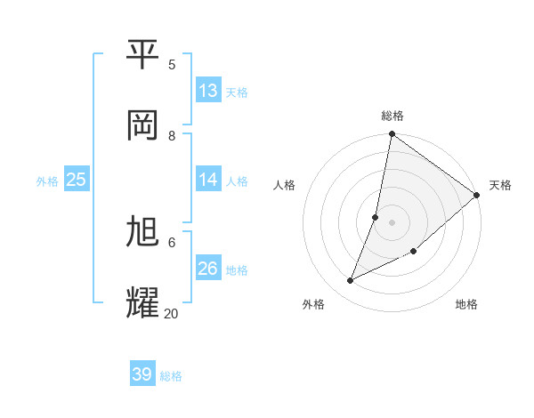 平岡 旭耀さんを姓名の画数から五運を鑑定