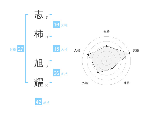 志柿 旭耀さんの総格は42画の3点!