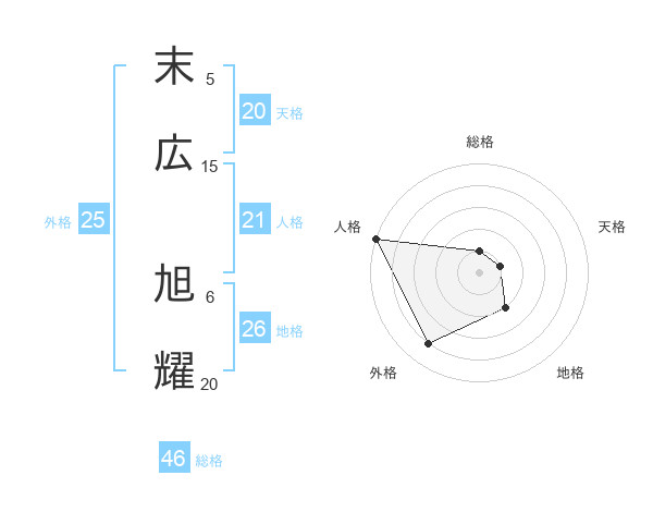 末広 旭耀さんを姓名の画数から五運を鑑定
