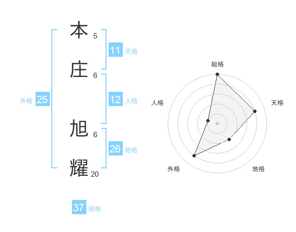 本庄 旭耀さんの総格は37画の5点!