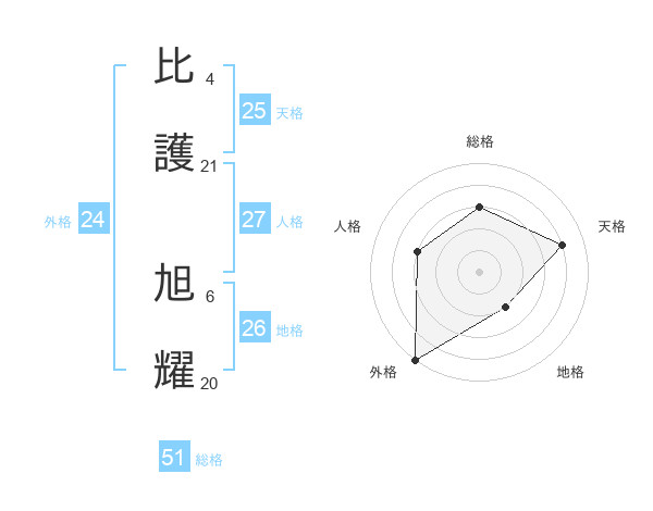 比護 旭耀さんの総格は51画の3点!
