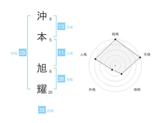 沖本 旭耀さんを姓名の画数から五運を鑑定
