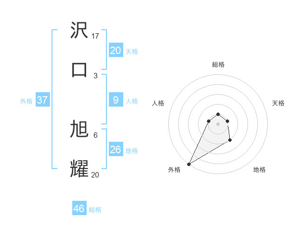 沢口 旭耀さんを姓名の画数から五運を鑑定