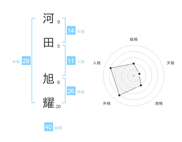 河田 旭耀さんの天格は14画の1点!