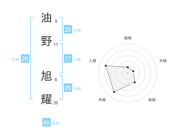 油野 旭耀さんを姓名の画数から五運を鑑定