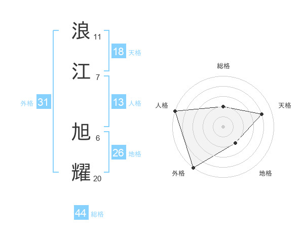浪江 旭耀さんを姓名の画数から五運を鑑定