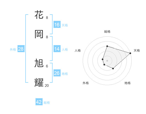 花岡 旭耀さんの総格は42画の3点!
