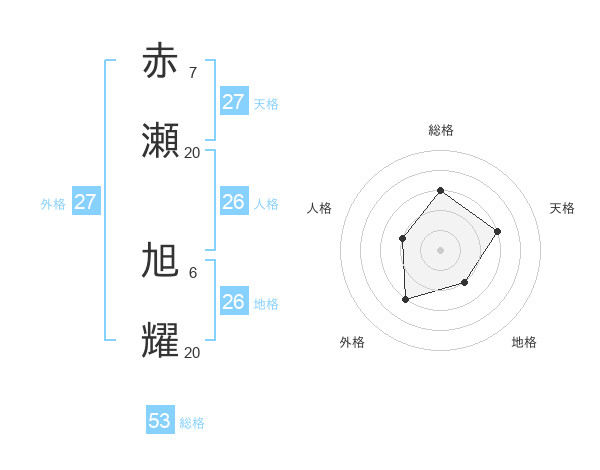 赤瀬 旭耀さんの総格は53画の3点!