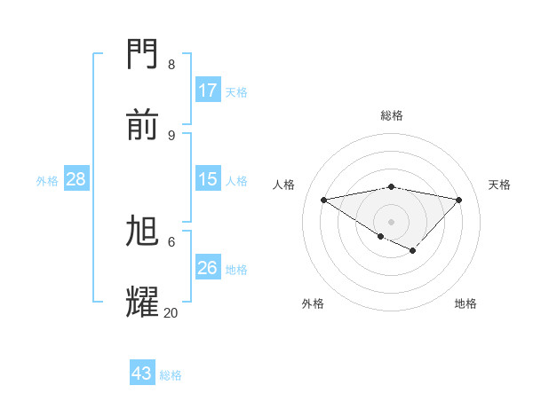 門前 旭耀さんの総格は43画の2点!