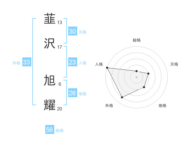 韮沢 旭耀さんを姓名の画数から五運を鑑定