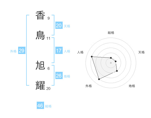 香鳥 旭耀さんの外格は29画の4点!