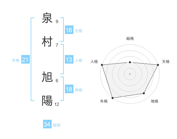 泉村 旭陽さんの天格は16画の5点!