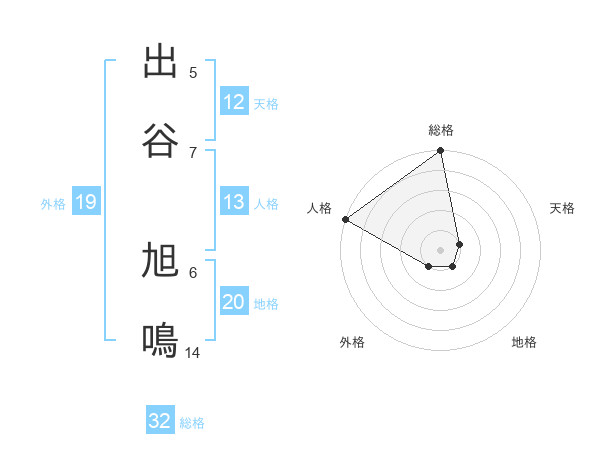 出谷 旭鳴さんの総格は32画の5点!