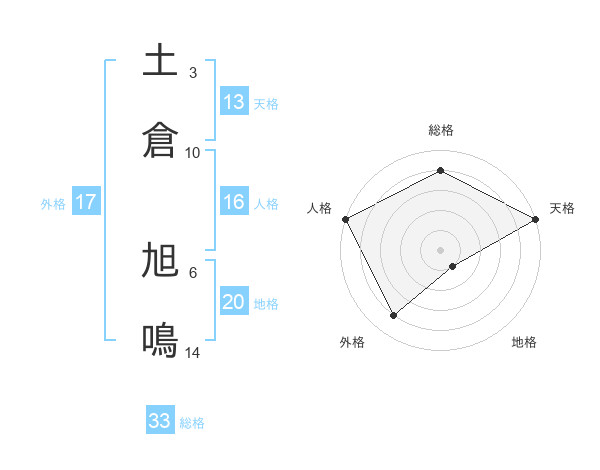 土倉 旭鳴さんを姓名の画数から五運を鑑定
