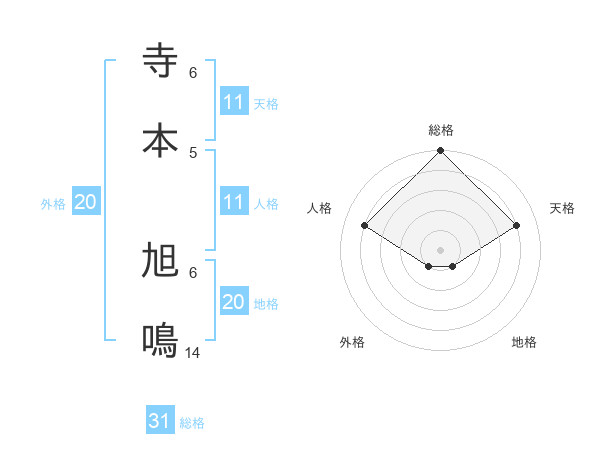 寺本 旭鳴さんの総格は31画の5点!
