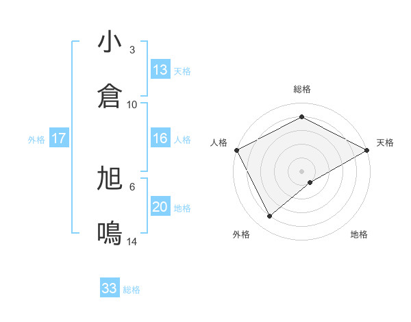 小倉 旭鳴さんを姓名の画数から五運を鑑定