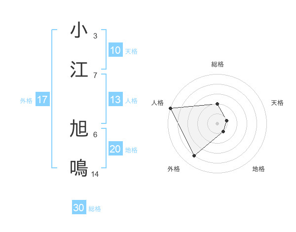小江 旭鳴さんの総格は30画の2点!
