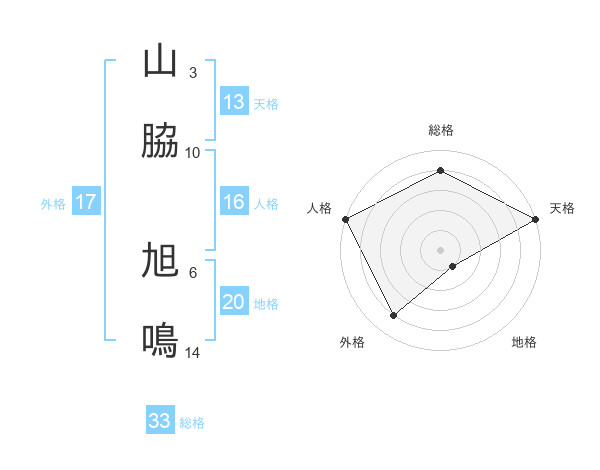 山脇 旭鳴さんの総格は33画の4点!