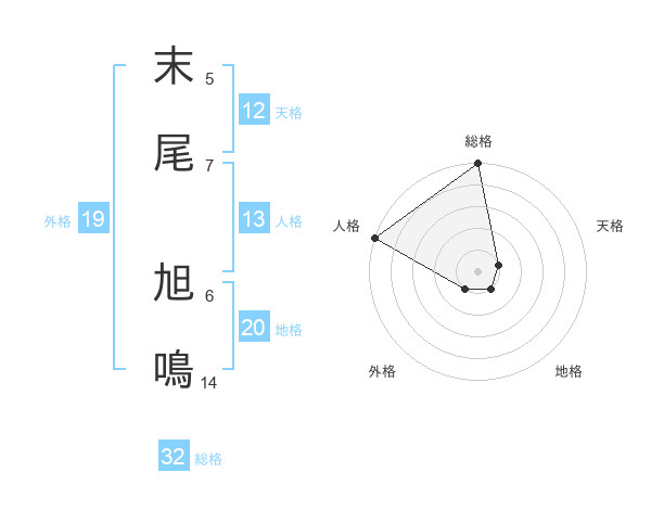 末尾 旭鳴さんを姓名の画数から五運を鑑定