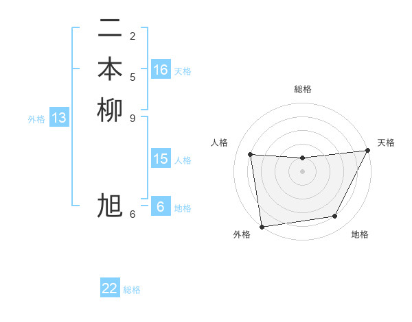 二本柳 旭さんを姓名の画数から五運を鑑定