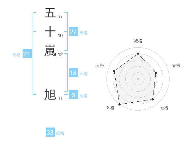 五十嵐 旭さんの外格は21画の5点!