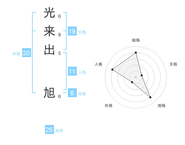 光来出 旭さんの総格は25画の4点!