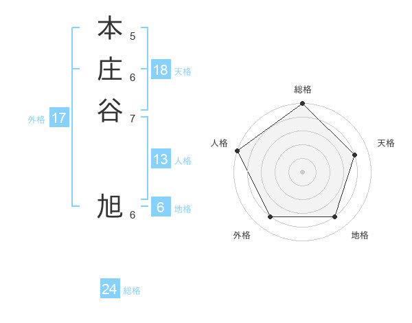 本庄谷 旭さんの総格は24画の5点!