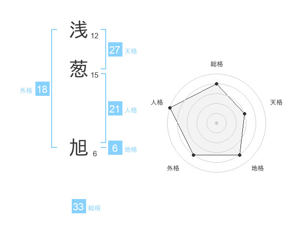 浅葱 旭さんの人格は21画の5点!