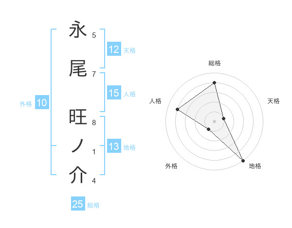 永尾 旺ノ介さんを姓名の画数から五運を鑑定