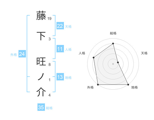 藤下 旺ノ介さんの天格は22画の1点!