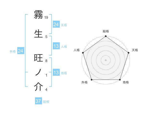 霧生 旺ノ介さんを姓名の画数から五運を鑑定