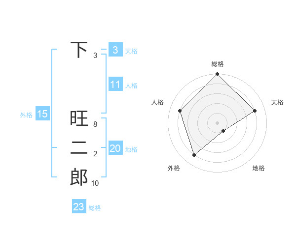 下 旺二郎さんを姓名の画数から五運を鑑定
