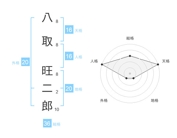 八取 旺二郎さんを姓名の画数から五運を鑑定