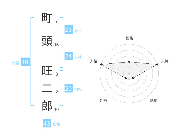 町頭 旺二郎さんの総格は43画の2点!