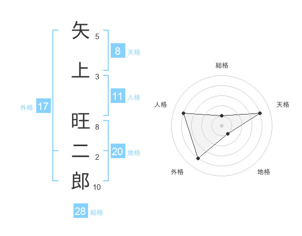 矢上 旺二郎さんを姓名の画数から五運を鑑定
