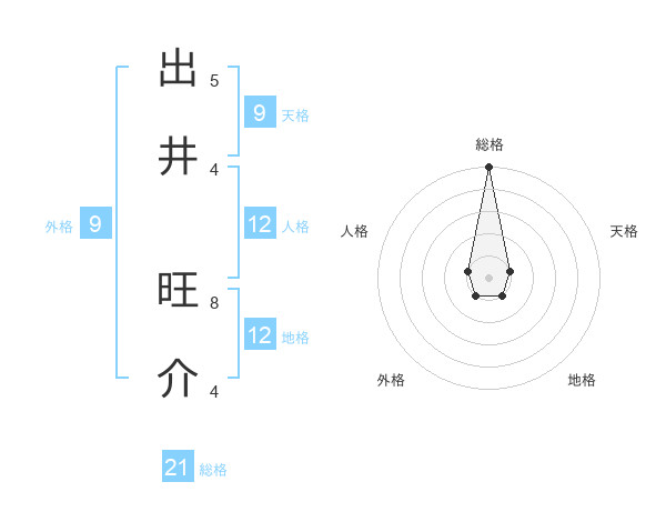 出井 旺介さんの総格は21画の5点!