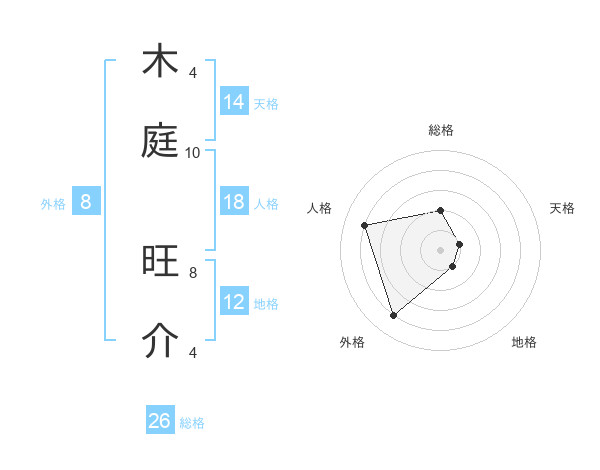木庭 旺介さんの総格は26画の2点!