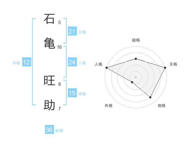 石亀 旺助さんの外格は12画の1点!