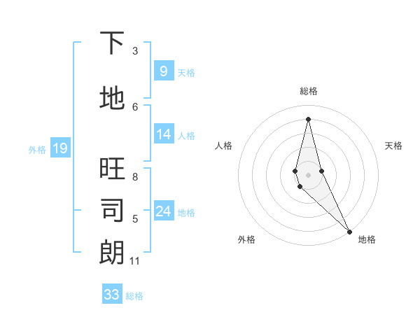 下地 旺司朗さんを姓名の画数から五運を鑑定