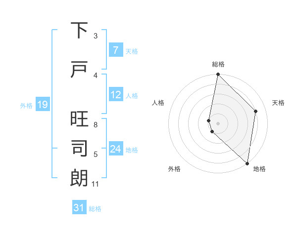 下戸 旺司朗さんを姓名の画数から五運を鑑定