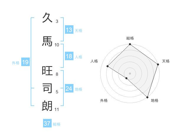 久馬 旺司朗さんの総格は37画の5点!