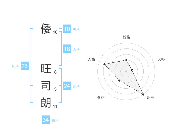倭 旺司朗さんを姓名の画数から五運を鑑定