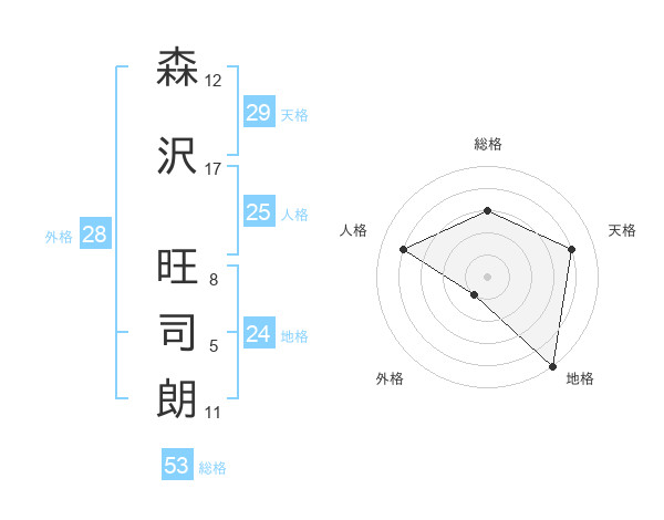 森沢 旺司朗さんを姓名の画数から五運を鑑定