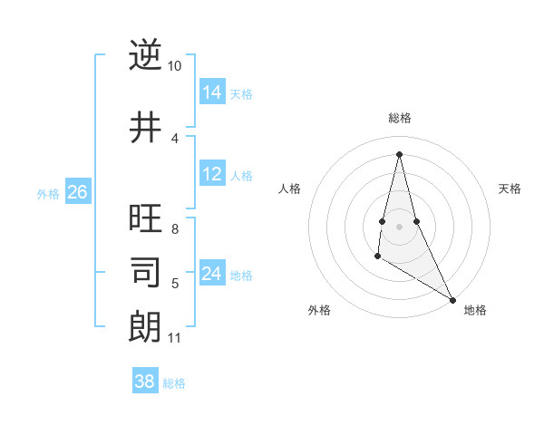 逆井 旺司朗さんの総格は38画の4点!