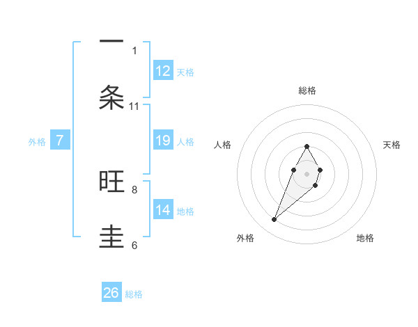 一条 旺圭さんを姓名の画数から五運を鑑定