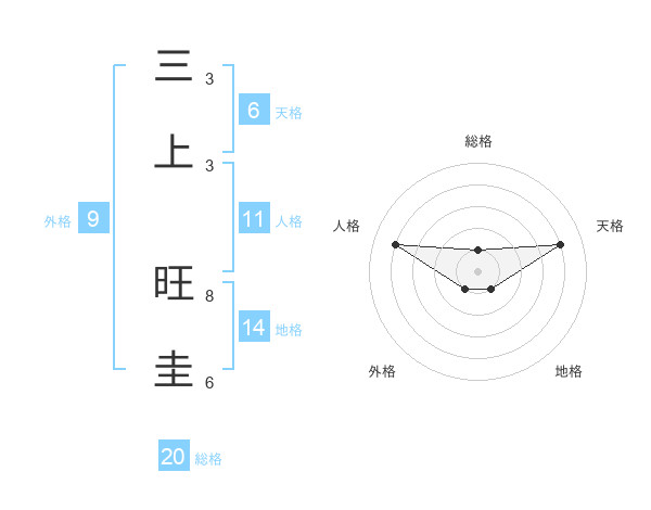 三上 旺圭さんを姓名の画数から五運を鑑定