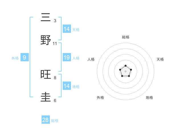 三野 旺圭さんの総格は28画の1点!