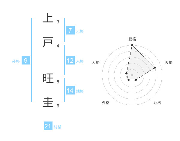上戸 旺圭さんの総格は21画の5点!